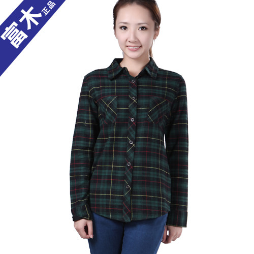 Fumu 8X13-61N autumn new women's clothing slim fit cotton casual plaid long-sleeved shirt women