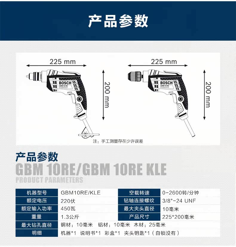 Bosch electric drill GBM10RE electric drill with positive and negative stepless speed regulation 450W