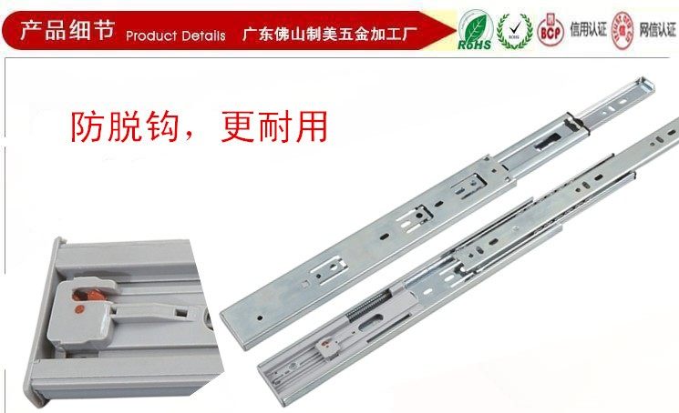 Manufacturer HLJM-4518 mute buffer Self-closing drawer slide rail side fit 3-section damping drawer slide rail