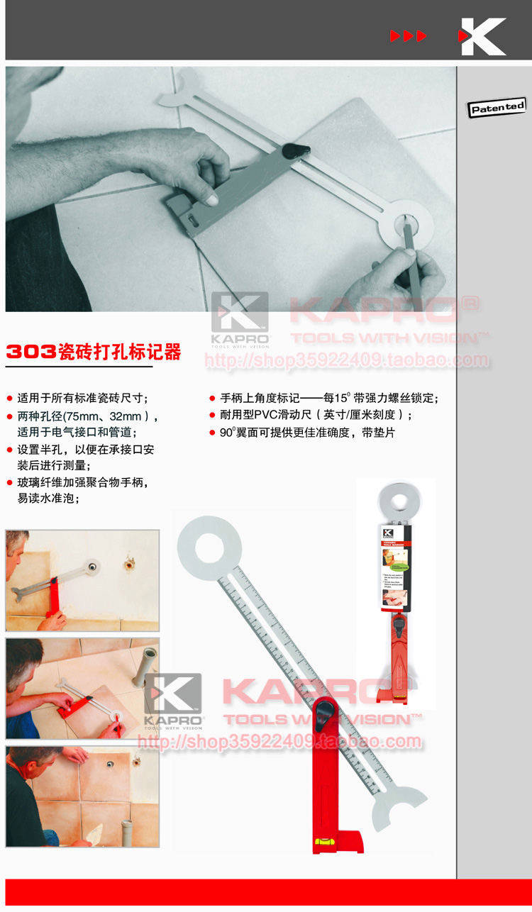 KAPRO tile punch marker Israel Cape Road Garbo 303 movable scribing ruler One blister