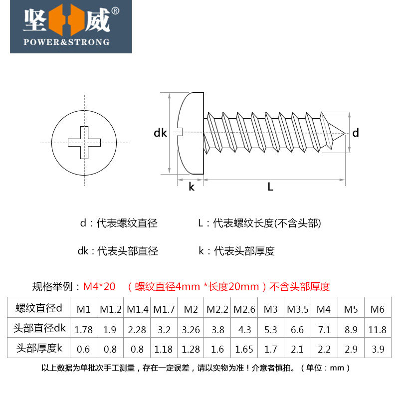 Stainless steel self-tapping screw 304 round head Zigong screw Pan head cross lengthened wood screw M2M3M4M5M6