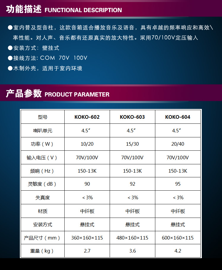 KOKO-602603604 Wooden indoor sound column audio music speaker Wall-mounted speaker Tenggao public broadcast