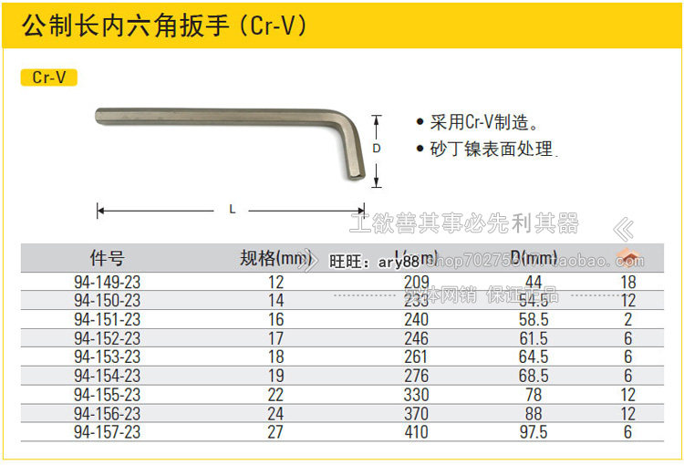 12mm length 209mm 94-14914mm length 233mm 94-15016mm length 240mm 94-15117mm length 246m