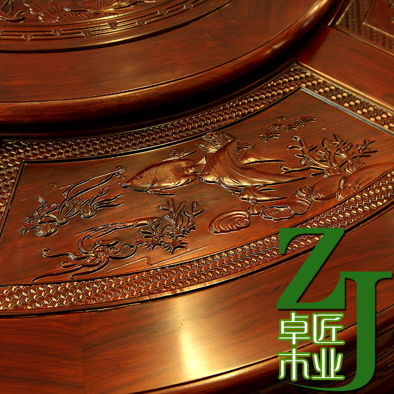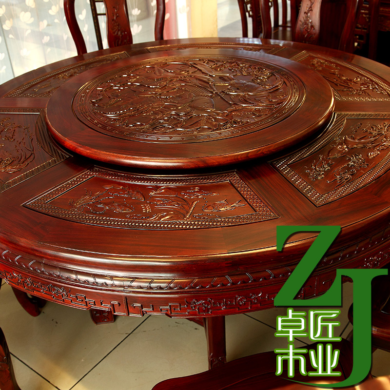 Promotion European-style red wood dining table and chairs combine African acid branches wood carvings with large round table Ming and Qing solid wood Classical Furniture