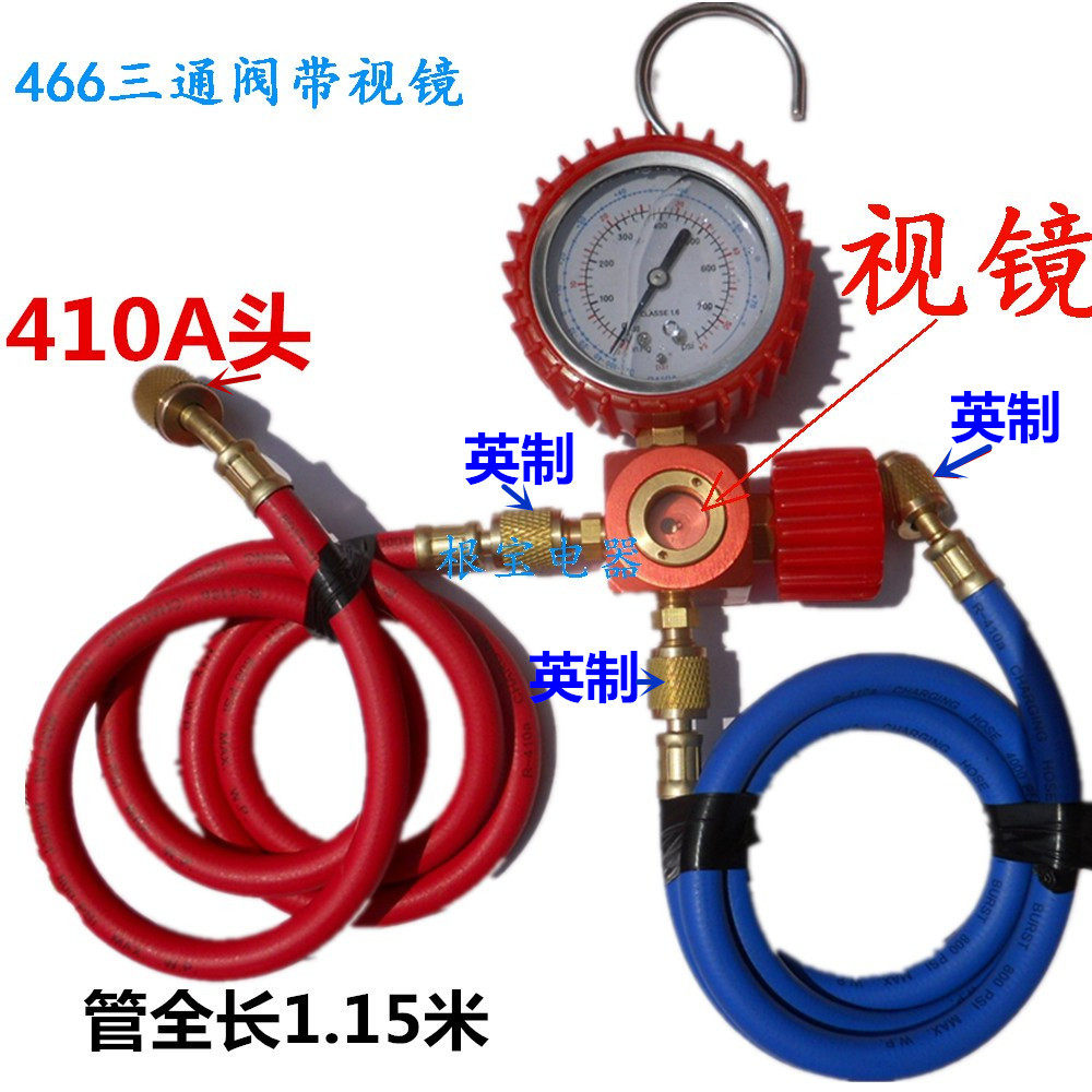 2 5 single meter valve R410A R32 oil pressure single meter high pressure valve 466 three-way valve with sight mirror tubing Double table valve Geflon suit R410 R32 explosion proof dosing pipe 1 5 m Yingying