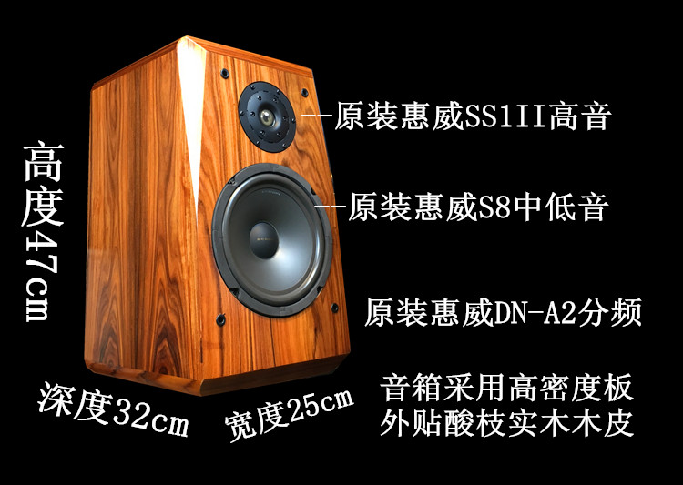 Huiwei audio 8 inch S8 SS1II A2 acid branch veneer speaker hifi Hi-fi audio 8 inch bookshelf speaker