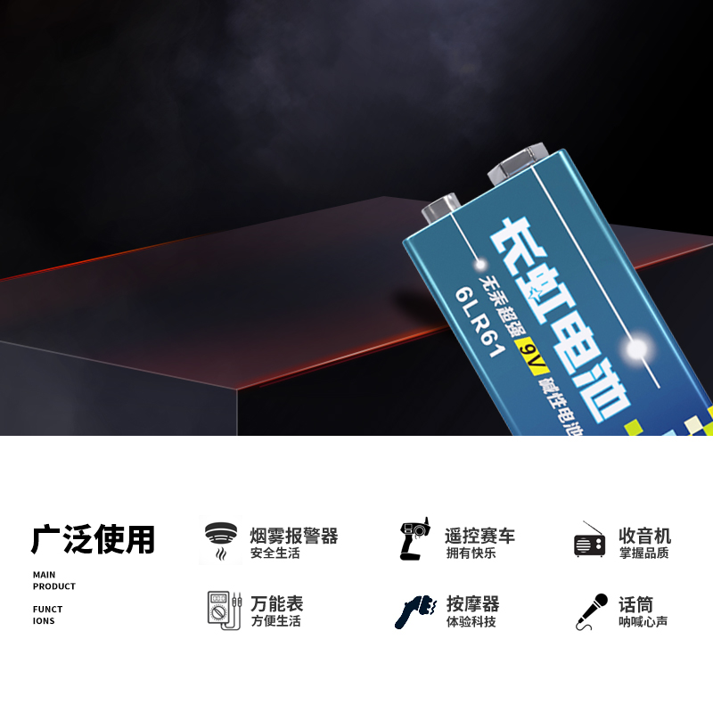 Changhong 9V battery nine-volt alkaline 6LR61 multi-meter smoke alarm thermometer gun square square battery