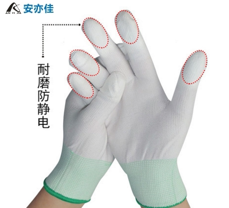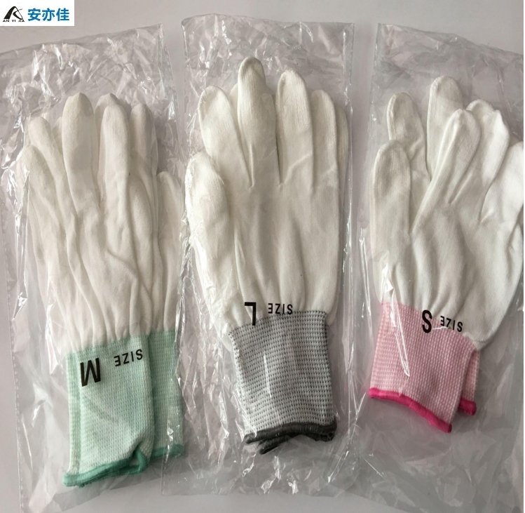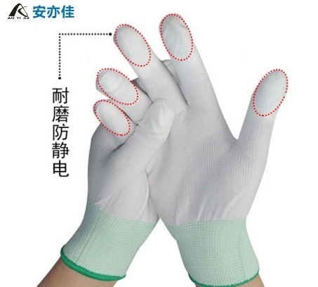 Ann also the new Laubao antistatic PU coated finger-coated white glove dust-free breathable nylon T C blend anti-slip with glue