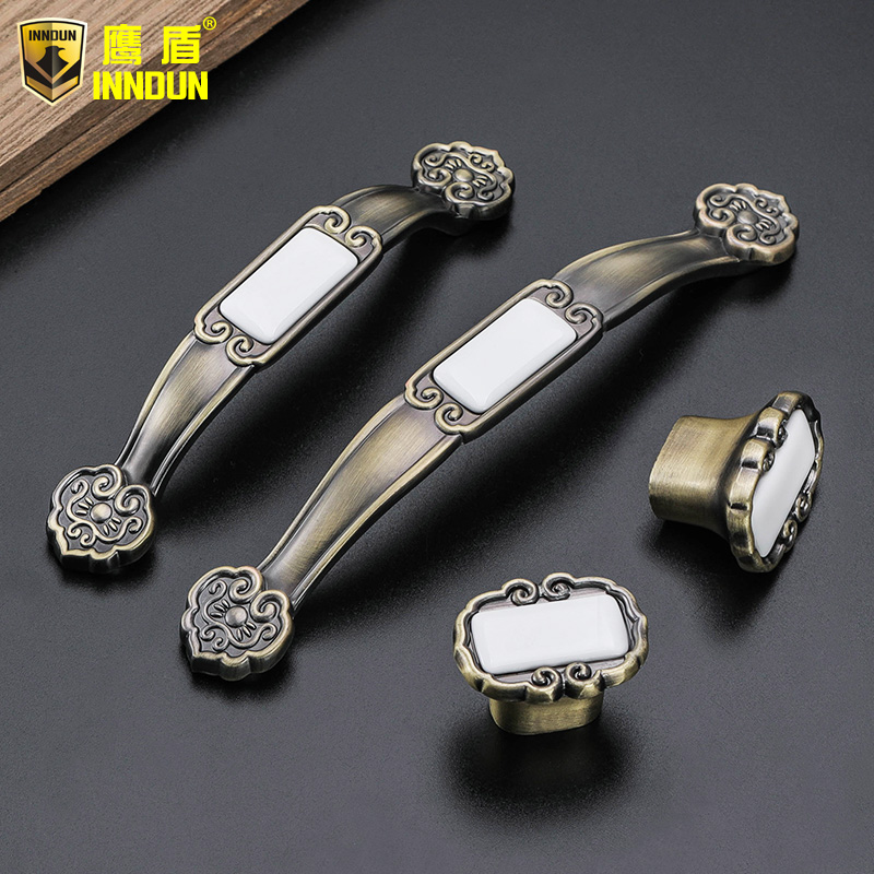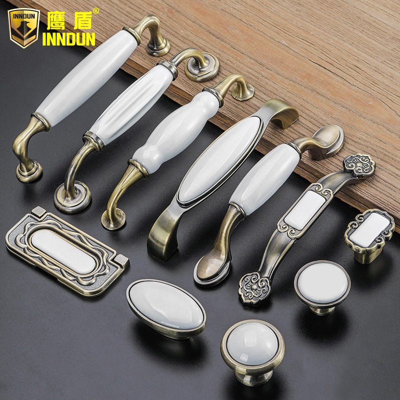 New Chinese cabinet door handle green ancient bronze white ceramic handle Eurostyle antique drawers?The overall cabinet wardrobe handle with a car