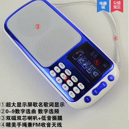 100 million Mi Sunshine Mini Sound Portable Card Speaker of the old man's radio out of mp3 playing with lyrics to show