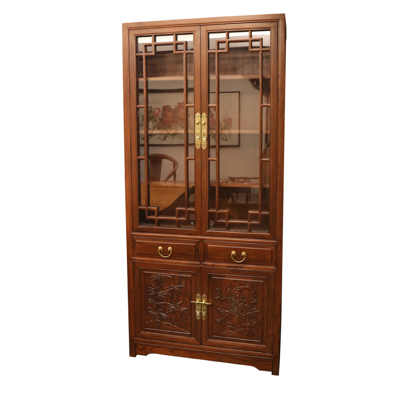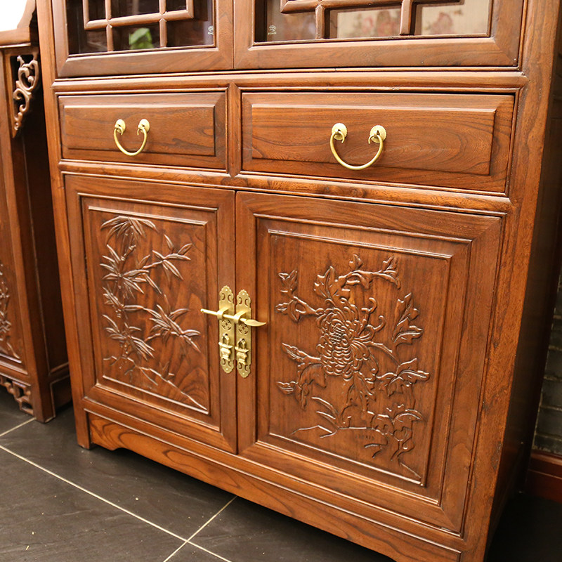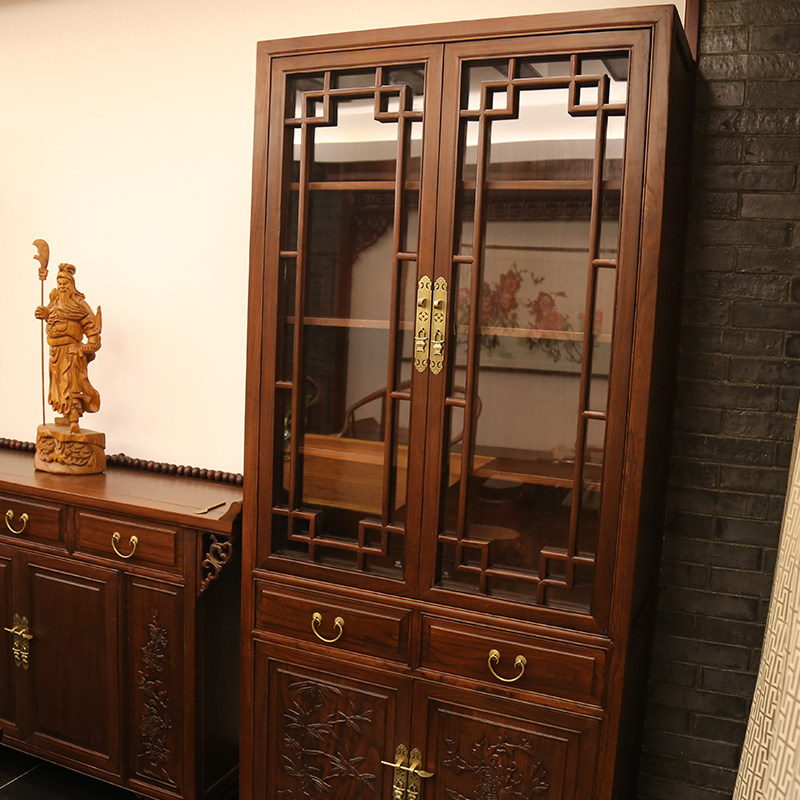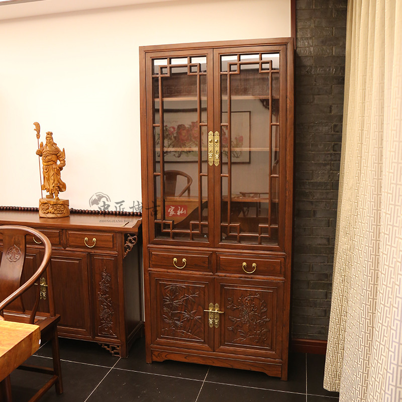 Chinese style bookcase Custom Ming and Qing Imitation Classical Furniture minimalist Antique Style Bookcase Full Solid Wood Display Cabinet Old Elm Wood Bookcase