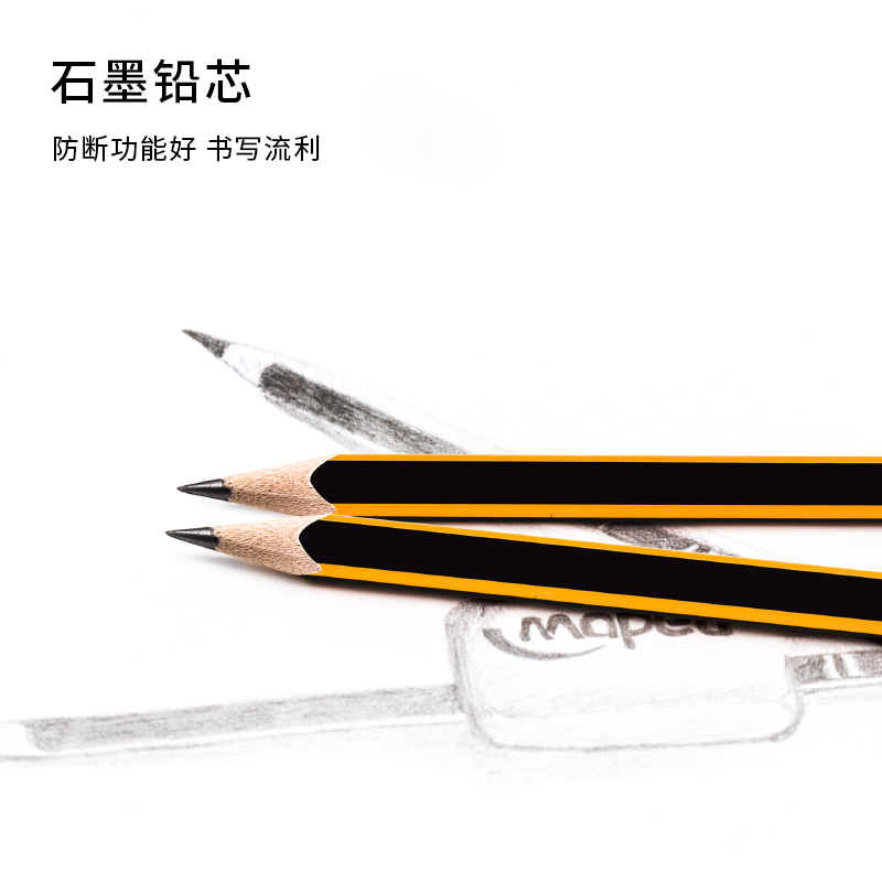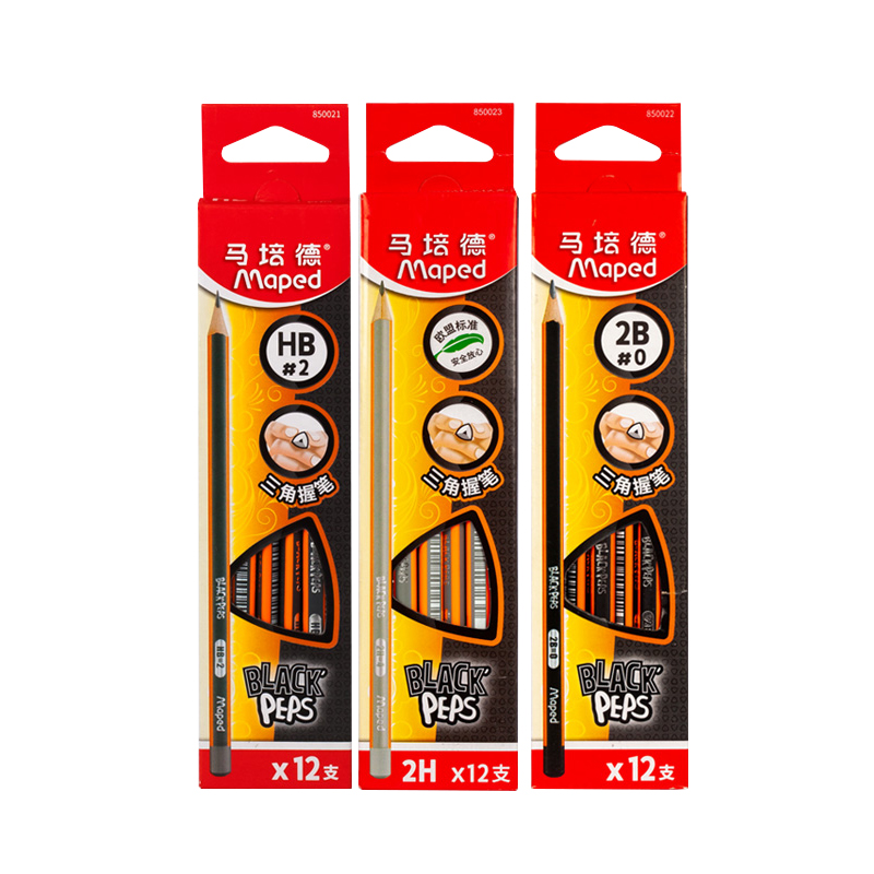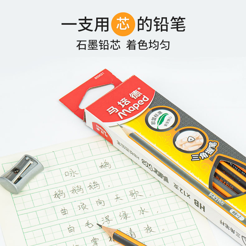 France MAPEDMaped Primary school students safe school writing triangle rod pencil 2HHB2B anti-break lead core rubber head 12 pieces of exam card with children's first and second grade stationery supplies