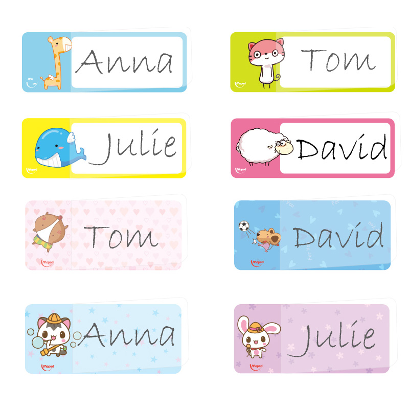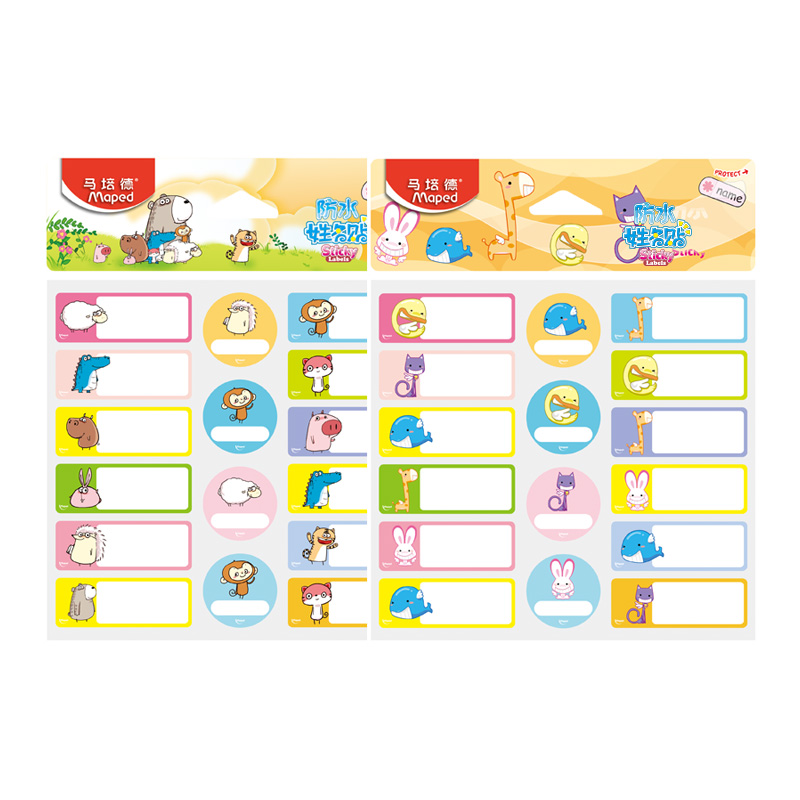 MAPEDMaped Name Sticker Waterproof film Writable Sticker Self-adhesive label paper Anti-fouling cartoon protective film Name sticker