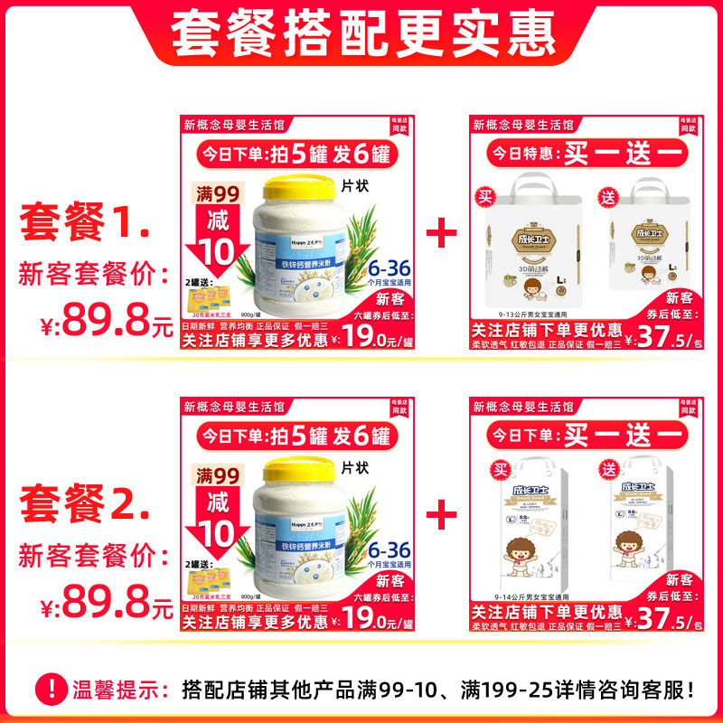 Happy bucket rice powder infant tablet auxiliary food 6-36 months baby child calcium and zinc nutrition rice