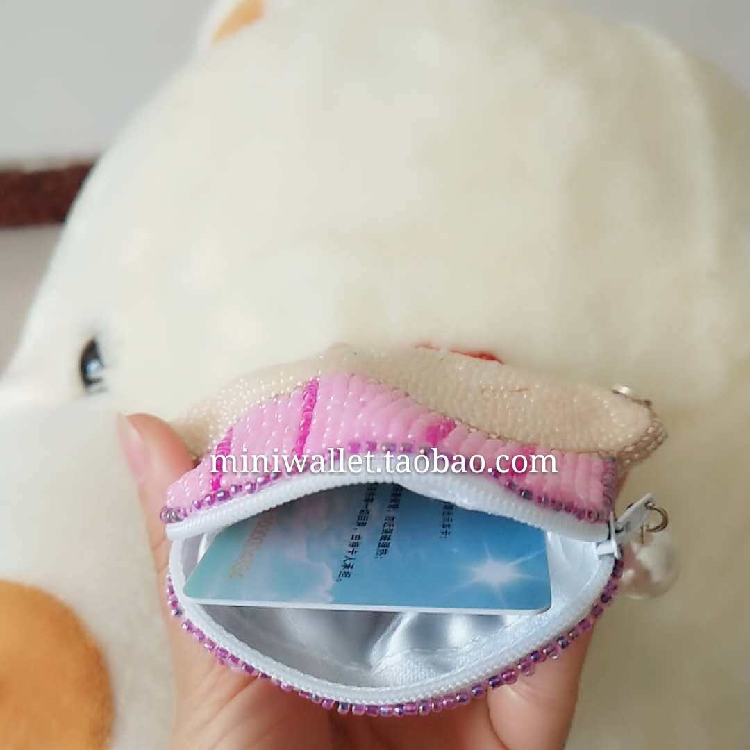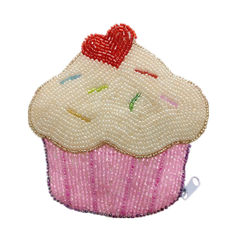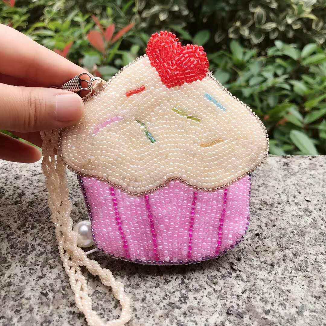Japan-ROK Pop Hand Bead Embroidered Zero Wallet Woman Hands Carrying Fresh Pink Strings Beads Coin Bag Loving Cake Slanted Satchel