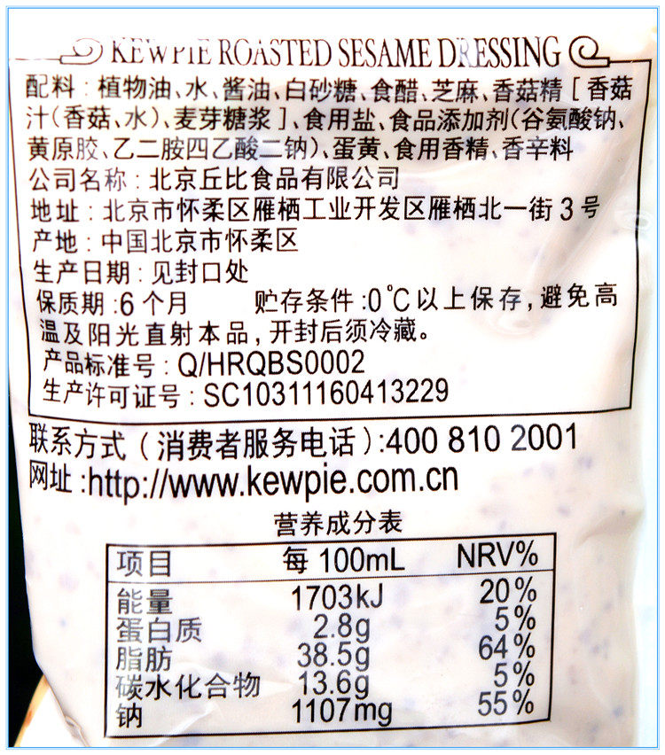 Vegetable oil Water Soy sauce White sugar Sesame vinegar Shiitake mushroom essence (Shiitake mushroom concentrated juice maltose syrup)Edible salt Egg yolk Food flavor Spices Processing raw materials for transgenic soybean oil