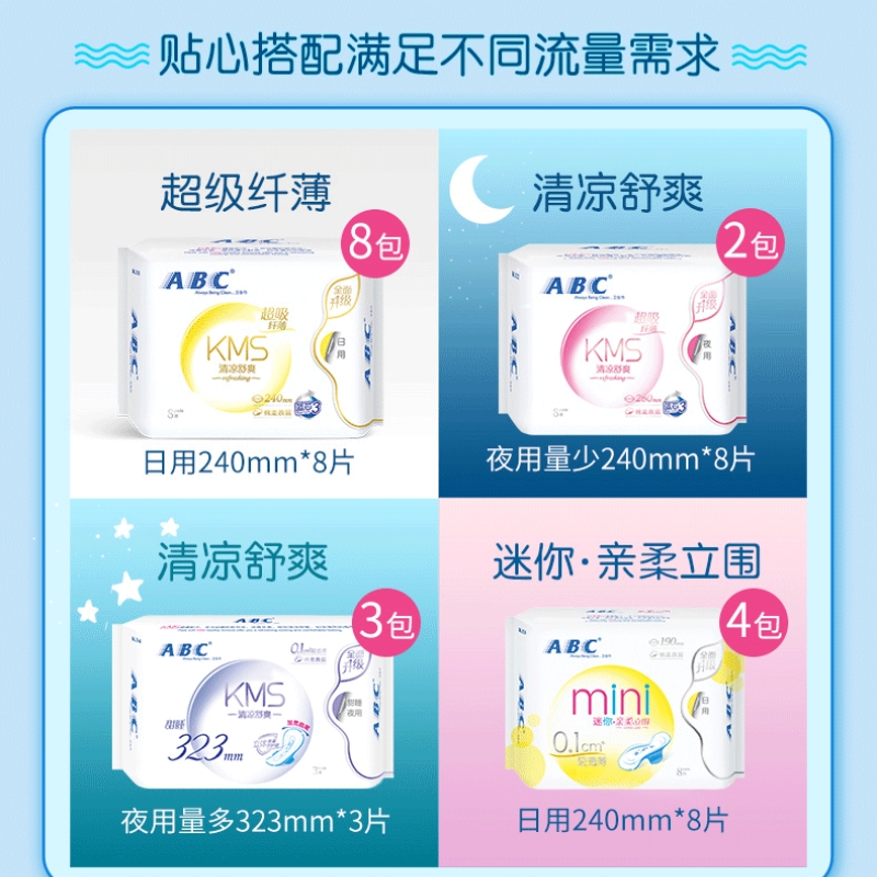 ABC daily combination 17 packs of sanitary towel aunt cotton soft skin mixed with thin wholesale