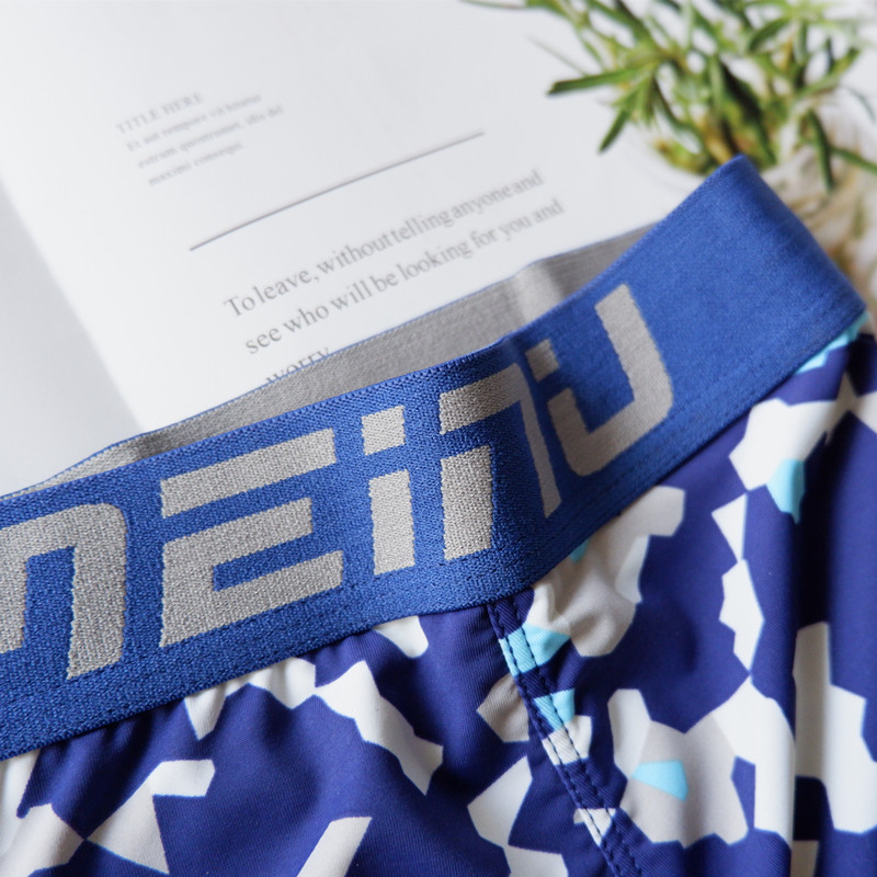 Bamenu ice silk men's underwear boxers Mid-waist incognito printing tide men's shorts Sexy ultra-thin youth boxers