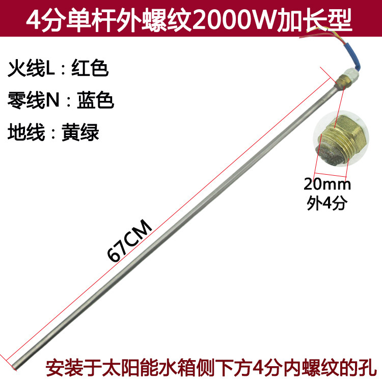 Solar water heater heating tube 4 points external thread Silk outlet 1500W Auxiliary electric heater 2000W Heating rods-Taobao