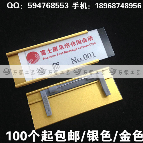 High-end metal aluminum alloy breast plate set up to replace hotel guesthouse workcard insert paper technician job number plate exchangeable