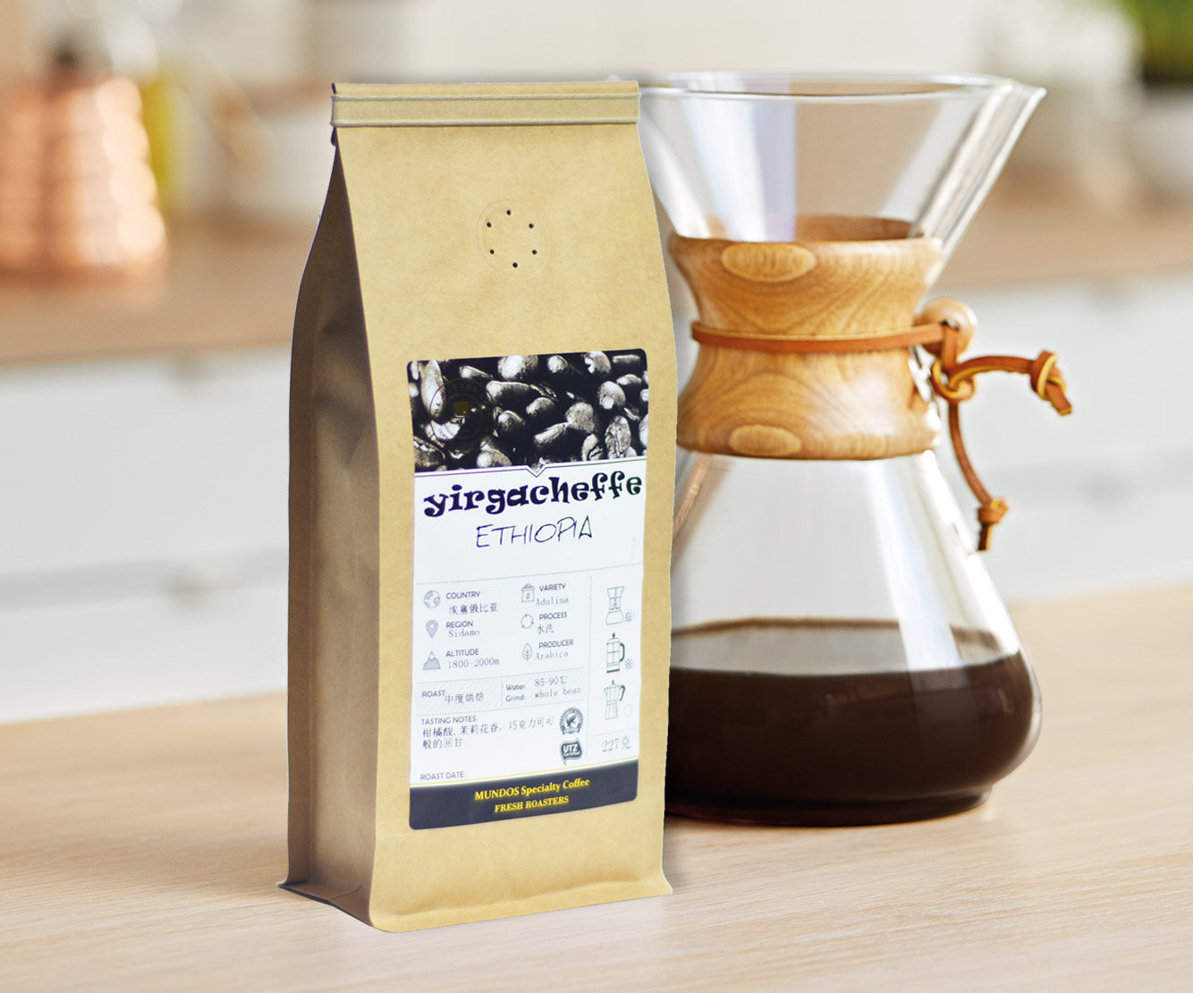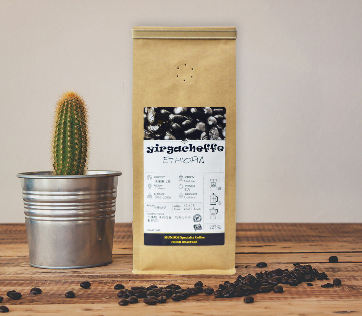 Modo Yirgacheffe Premium Coffee Beans Citrus Flavored Freshly Ground Coffee Powder 227g