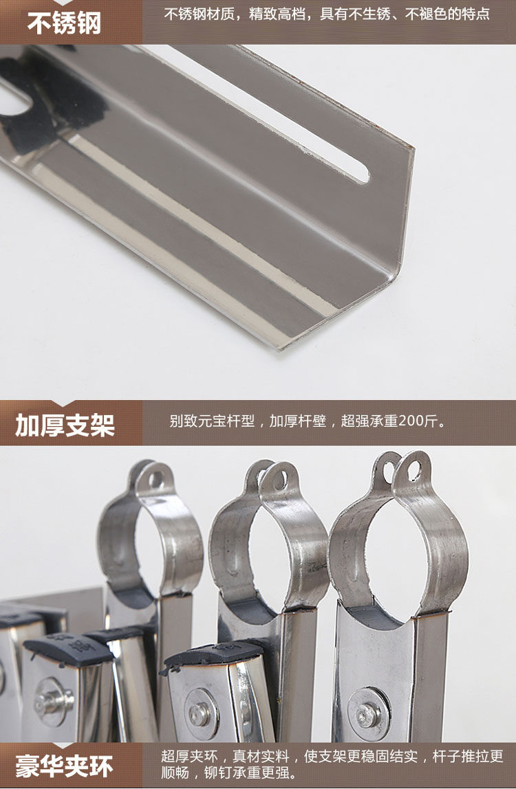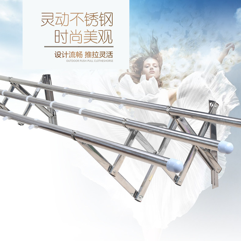 Stainless steel balcony outdoor telescopic clothes rack push-pull folding clothes rack Outdoor installation window quilt drying rack