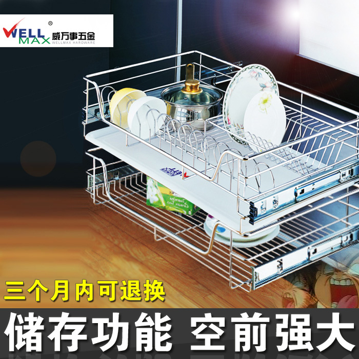 Solid decoration Home Viwan matter overall plus coarse kitchen Bowl Basket Stainless Steel Pull Basket Double cupboard Cupboard Bowl rack