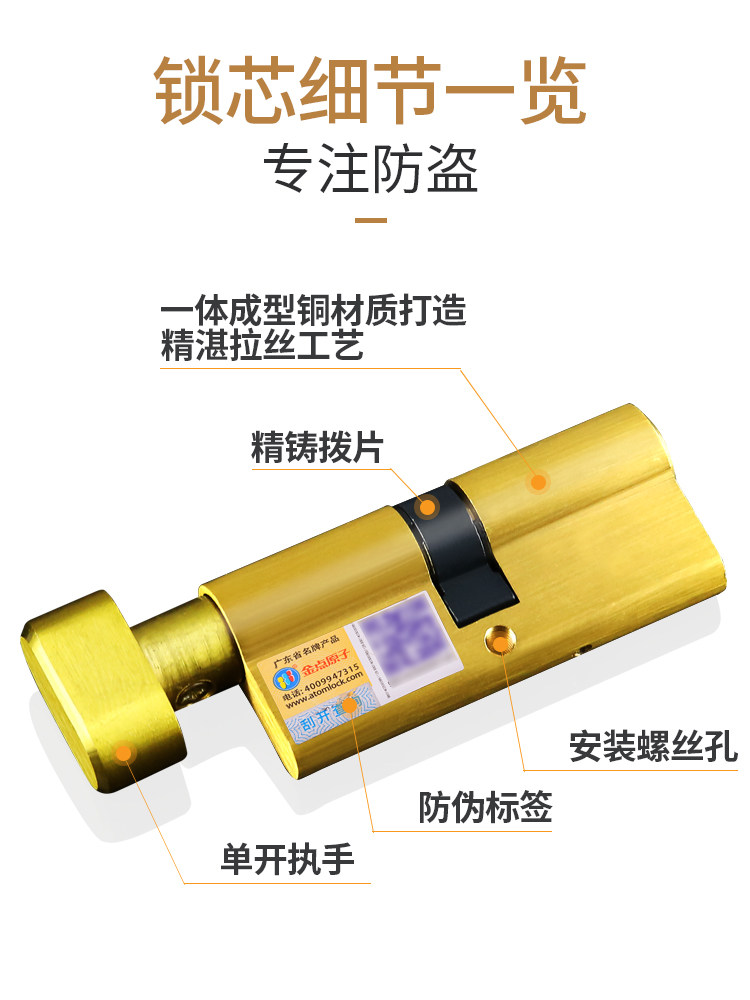 Gold dot atomic lock cylinder single open twist anti-theft door lock core blade C class wooden door door lock core