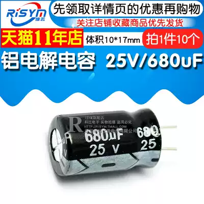 Risym electrolytic capacitor 25v 680uF volume 10*17 straight-plug high-quality aluminum electrolytic capacitors 10