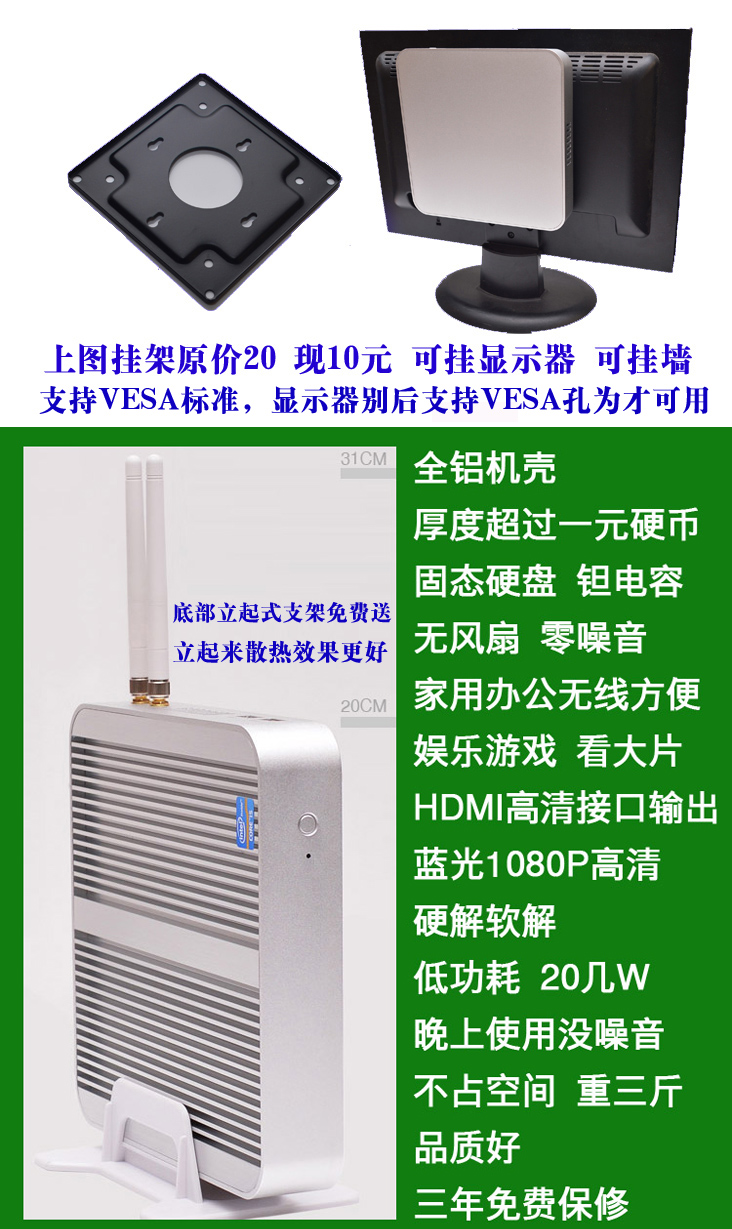 Xingchen quad core I5 fanless small host HD mini - living room computer HTPC host fan - free industrial control computer