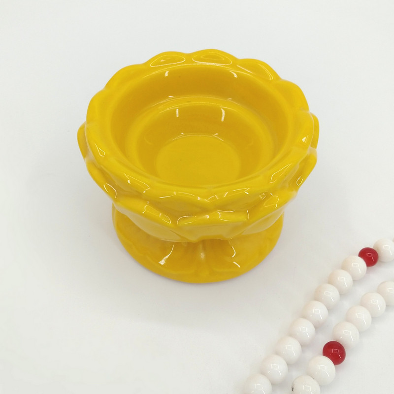 Hand painted ceramic lotus Buddha Former Changming lamp liquid ghee lamp for Buddhist light regulation lamp Buddhist supplies
