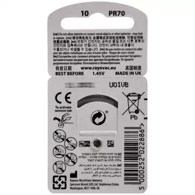 United States Reteway RAYOVAC imported hearing aid battery A10 zinc air battery button battery PR70