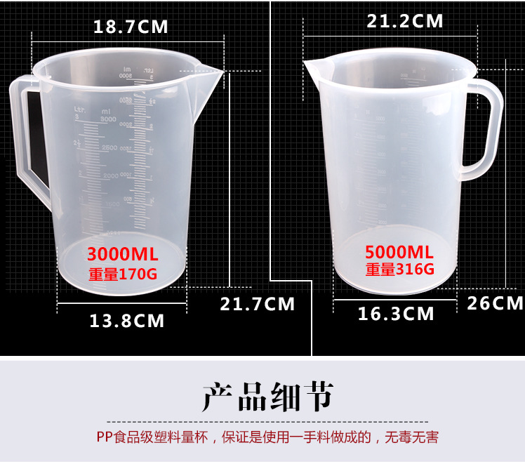 Plastic transparent measuring cup cylinder Kitchen Baking Tool Milk Tea Large Capacity Thickened Double-sided Scale High Temperature Resistant 5000ml
