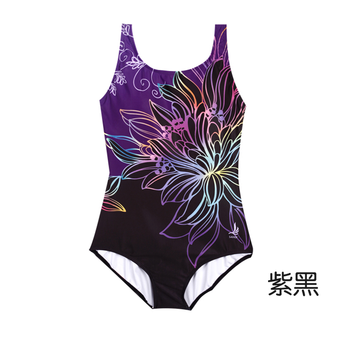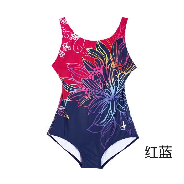 Sanqi Professional Swimsuit Female Conservative Slim Cover Belly One-Piece Small Flat Angle Print Middle-aged and Elderly Large Size Hot Spring Swimsuit
