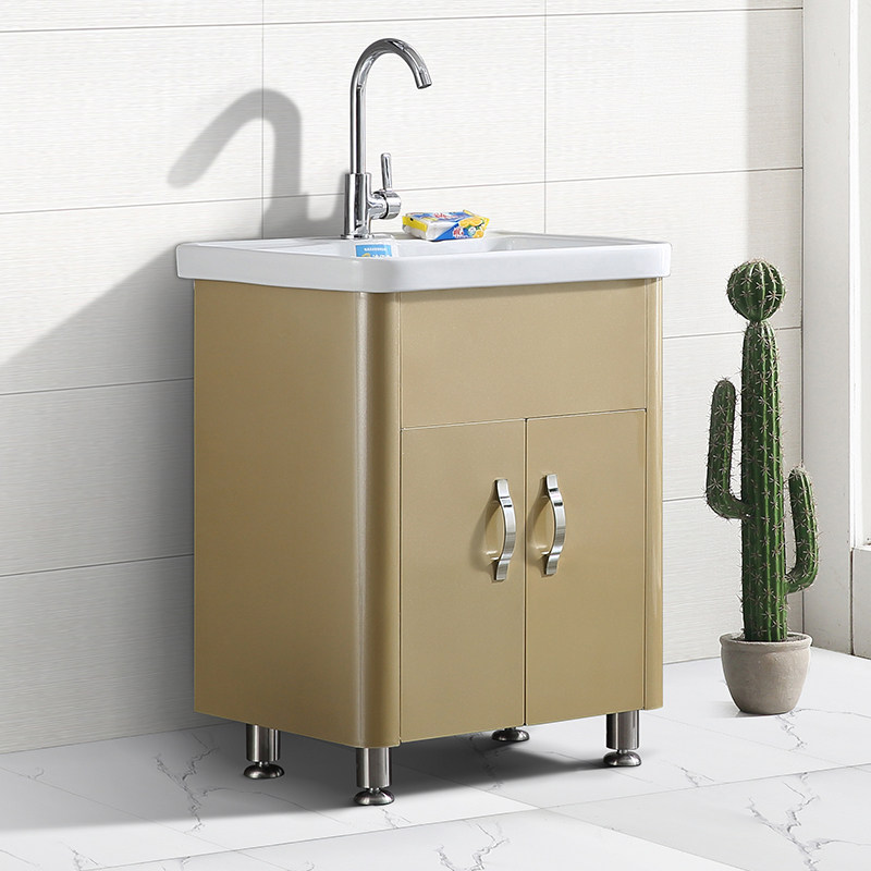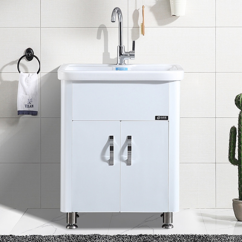 Customized balcony cabinet minimal modern laundry cabinet ceramic washing pool washing pot washing board