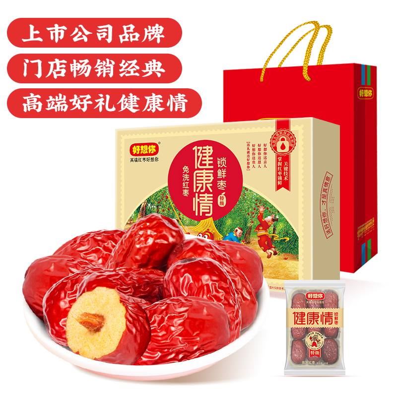 Contains 18 small bags of super health red dates gift box 999G (gift bag) contains 20 small bags of first-class health red date gift box 999G (gift bag)