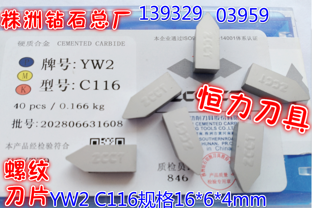 Zhuzhou diamond brand alloy thread turning blade YT14YT15YT5 YG6 YG8 YW2C116 YW1 C116
