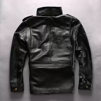 AVFLY men's leather leather jacket multi-pocket M65 hunting leather jacket stand-up collar cowhide jacket motorcycle men