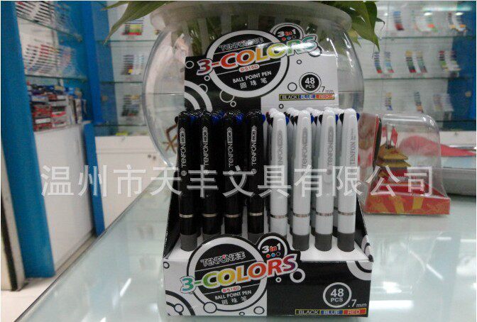 Tricolor pen red blue and black tricolor ball pen office multi - ball pen wholesale nationwide