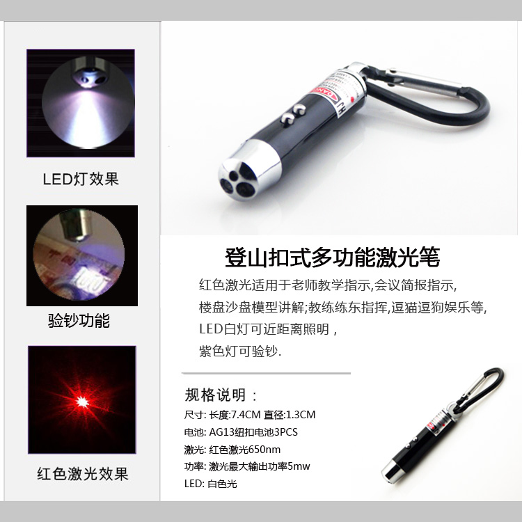 Wenqing DSK01 Laser whip-taught one climbing button Red laser White light light Light Violet Bank Inspection Laser pen Red laser point can be teased dogs etc