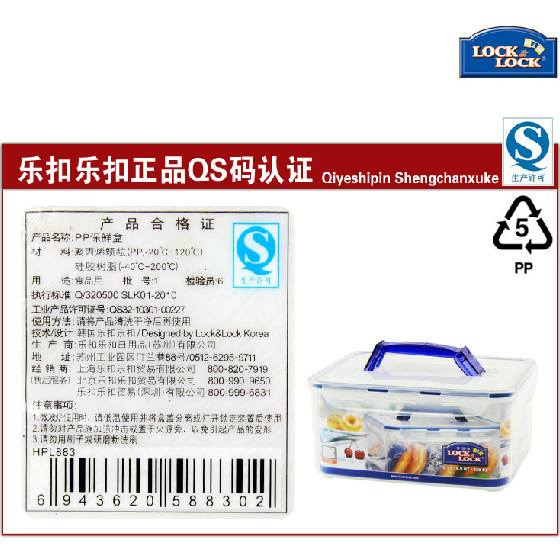 Lock lock storage box 6 5L large handle with lid refrigerator food sealed storage box HPL883