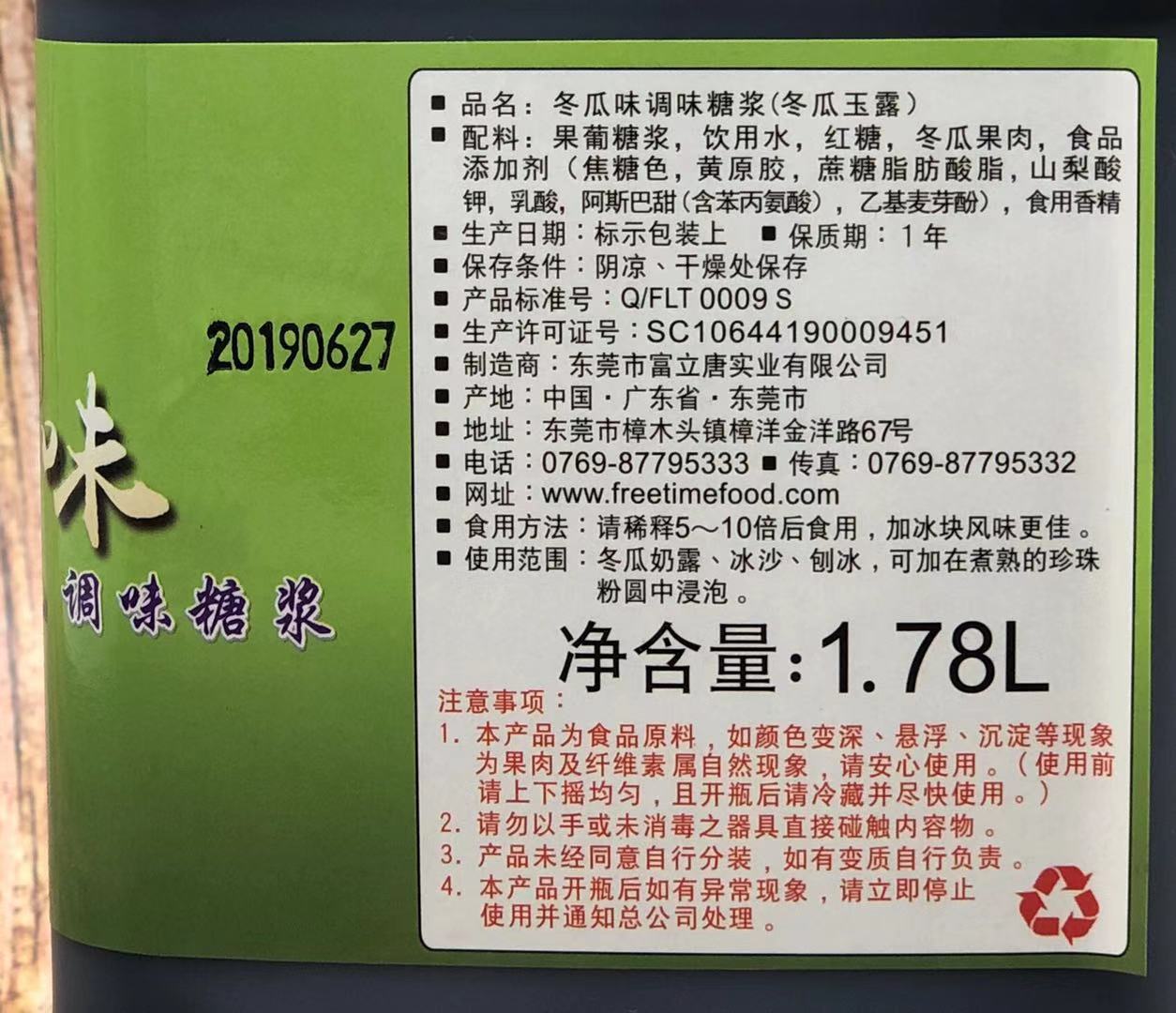 Milk tea raw material high-power concentrated jam Fulitang wax gourd flavor 1 78L