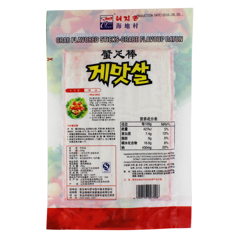 Haitian village crab meat stick 250g sushi ingredient Korean style troop hot pot ingredients Oden crab fillet simulated crab foot stick