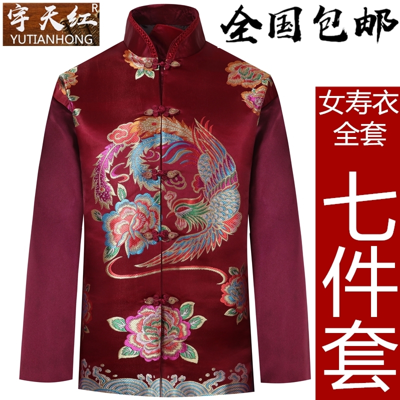 Tang dress five collar three waist men and women seven full set of shou clothes brocade burial shou clothes ladies shou yi men full set urn