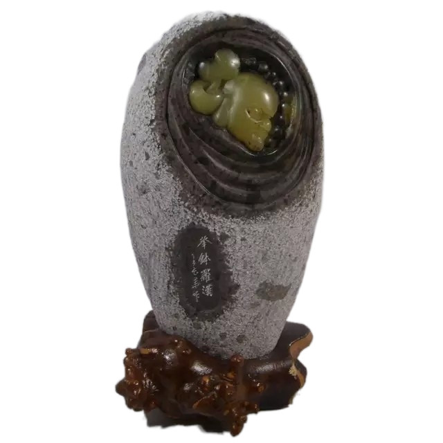Natural Qingtian Zhou Village Longegg Stone engraving lifting bowl 18 18 Rohan pendulum piece pure handicraft figure overdraft hot pin