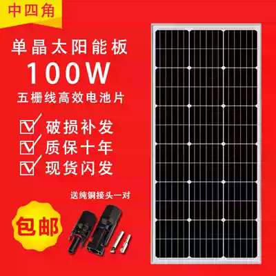 Single crystal solar panel PV100W18V photovoltaic power generation charging 12V battery household solar panels