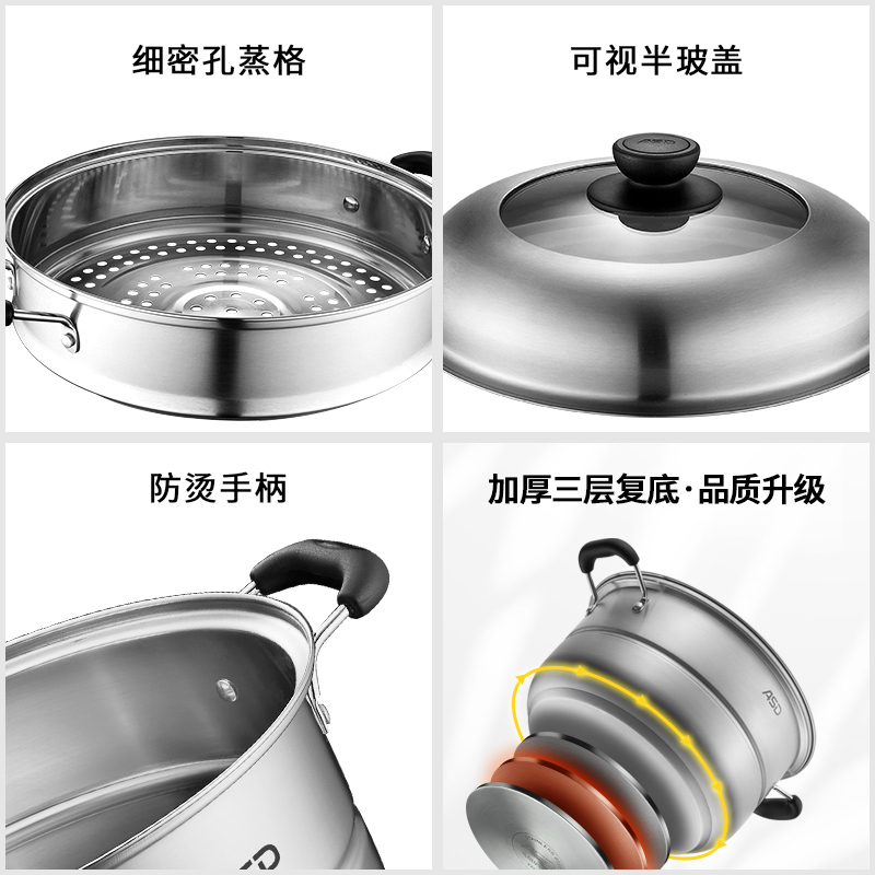 Asda steamer household small 3 three-layer large capacity stainless steel steamer steaming steamed buns steamed bun bun induction cooker