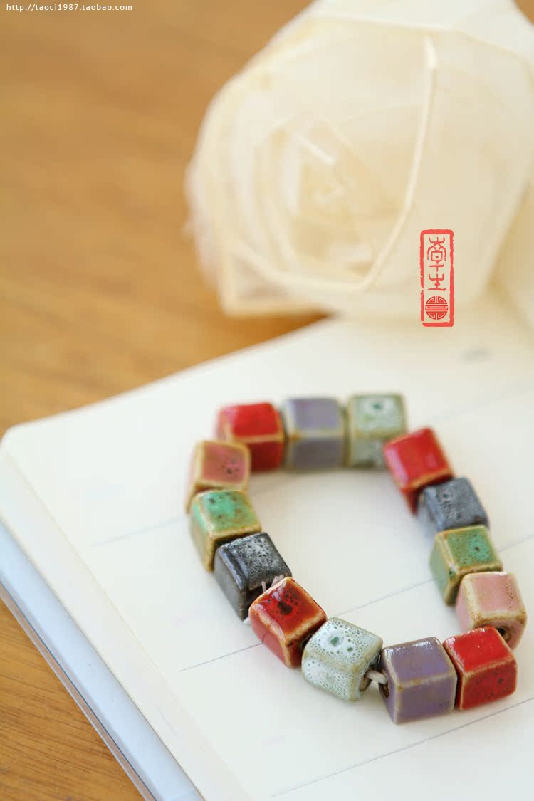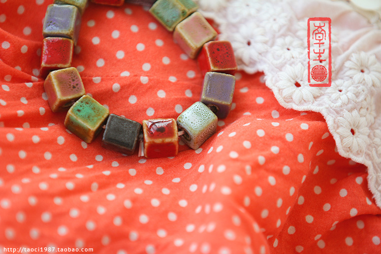 Ceramics 1987 Jingdezhen Ornament Creative Jewellery Square Handwoven Five Colored Porcelain Beads Handmade Ethnic Wind