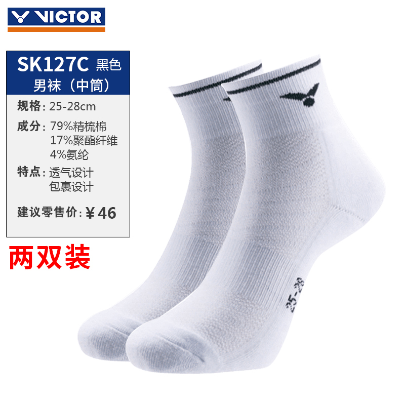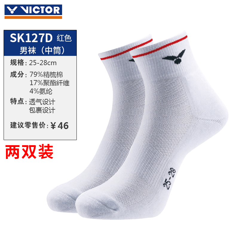 Special price new Victory Badminton Socks SK127 Men's Socks Medium Barrel Two Pairs