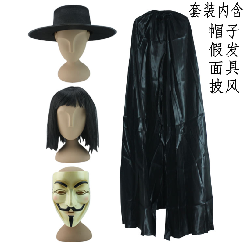 120cm suite (hat cloak wig mask)V white-white-metre-yellow mask V-word mix 120cm pure black cloak 140cm pure black cloak V-cap V-cap V-literal mask 120